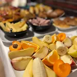 jag hade en underbar frukost med juice, ost och yoghurt. vi fick ett funktionellt rum med balkong. personalen var hjälpsam.